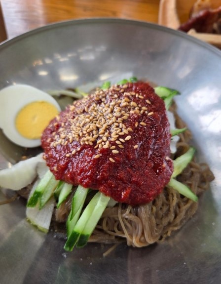 냉면은 차가운 육수(평양냉면)나 매콤한 복장장(함흥냉면)에 메밀면을 곁들여드리는 대표적인 음식이에요.